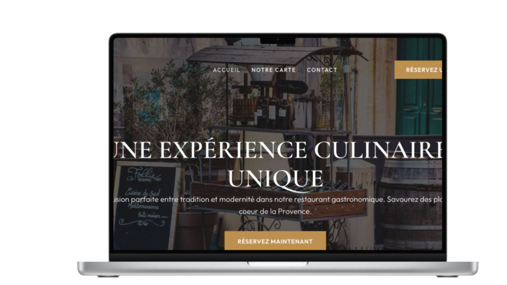 Alliez un design élégant à une stratégie efficace pour attirer plus de clients dans votre établissement. Je crée votre site internet pour restaurant sur-mesure, optimisé pour le SEO local et conçu pour transformer chaque clic en une table réservée.